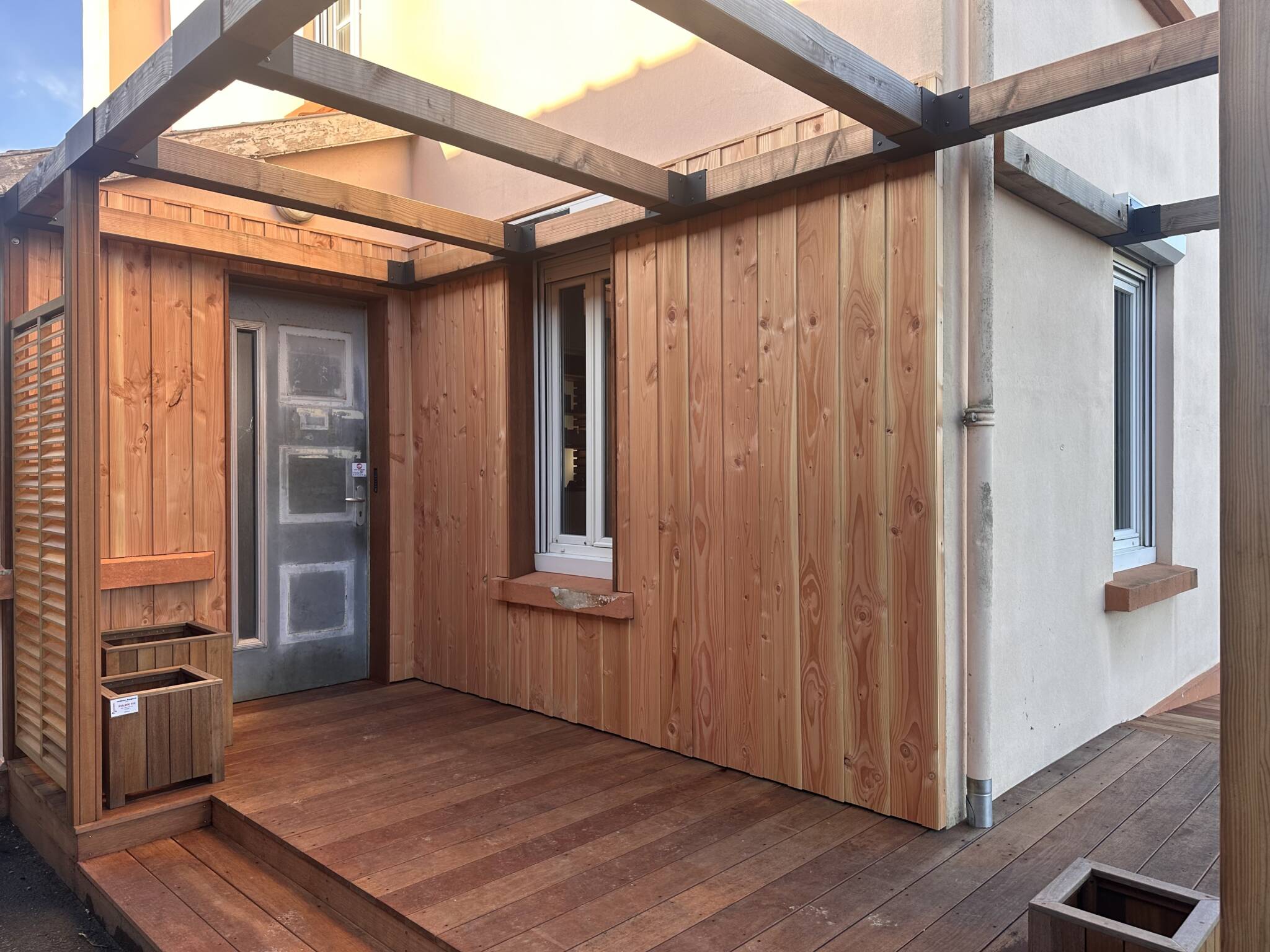 Le douglas est quant à lui apprécié pour son aspect chaleureux, une douce teinte rosée remplacée progressivement par une belle patine argentée sous l’effet du soleil. Il est aussi possible de conserver la teinte d’origine avec un saturateur.