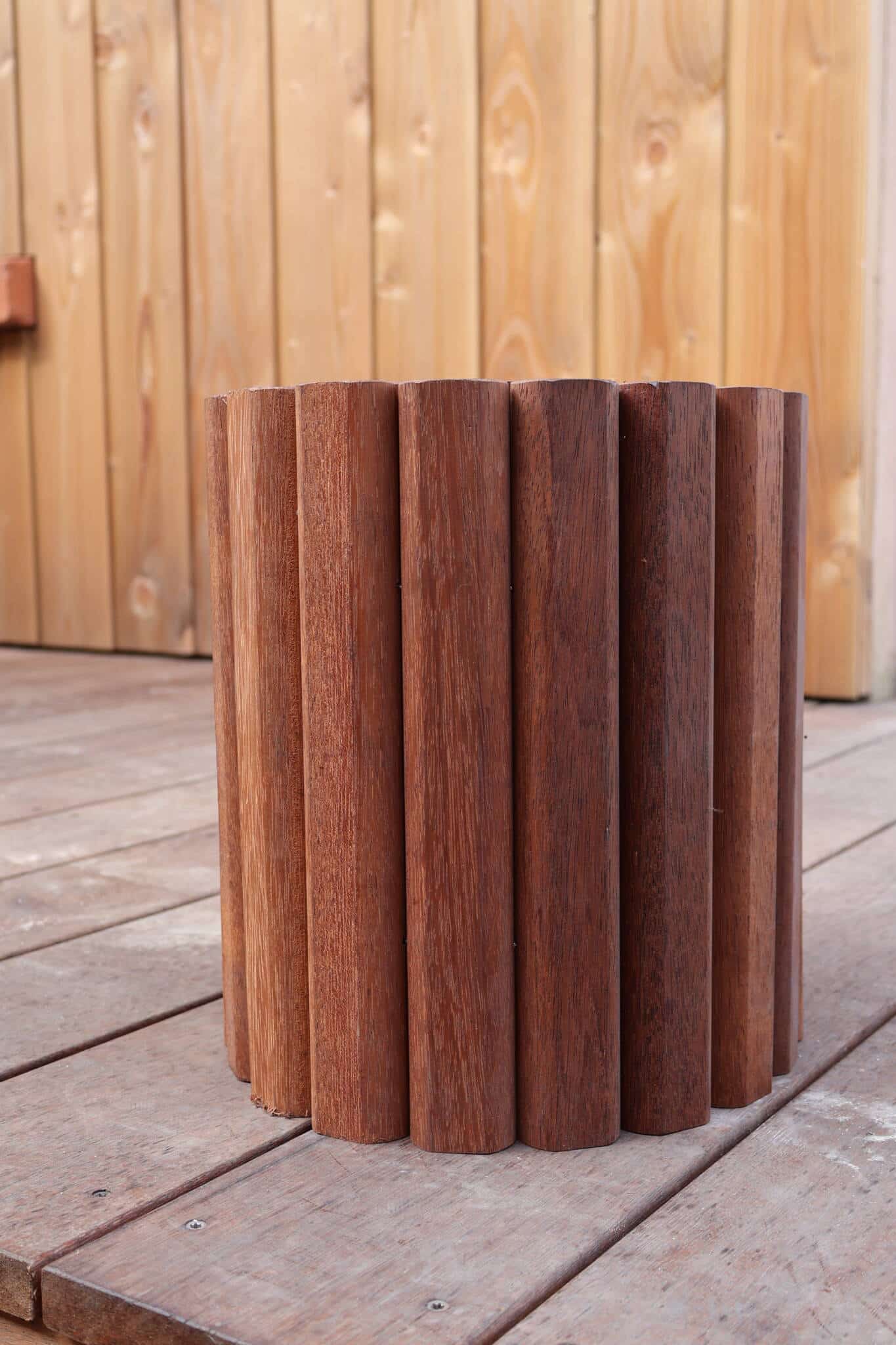 Le Merbau est un bois exotique reconnu pour sa résistance : humidité du sol, champignons, insectes et variations climatiques. Classé en emploi 4, il est particulièrement adapté aux applications en contact direct avec la terre, ce qui en fait le matériau idéal pour des bordures semi-enterrées.
