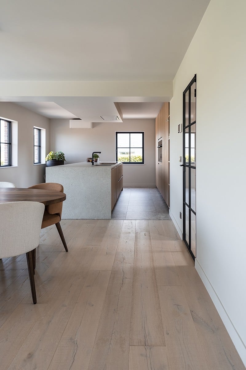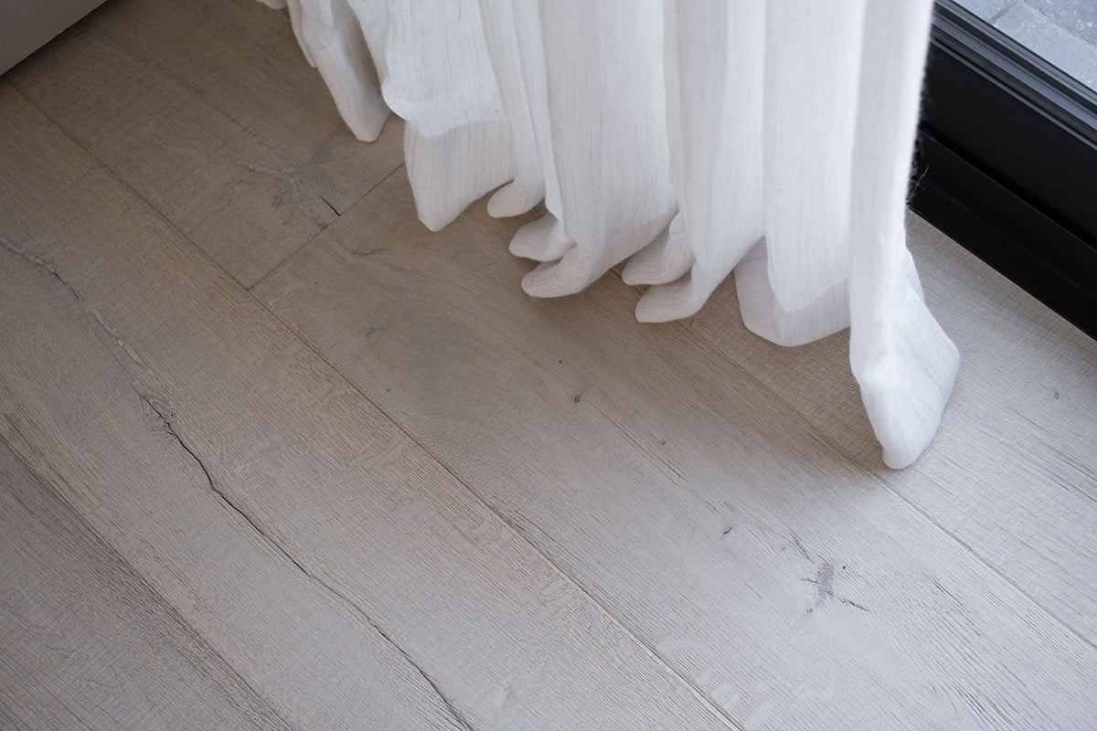 Le parquet Carcassonne est profondément brossé, toutes ces étapes lui confèrent un aspect vieilli, cela renforce son côté “vintage” très recherché depuis plusieurs années par les professionnels de la décoration. La gamme est disponible en 4 coloris du foncé au plus clair, vous avez le choix : Black, Blanco, Look Unfinished et Natural. L’aspect vieilli du bois est en partie dû au fait que les lames de parquet soient cérusées. Cette finition permet de mettre en teinte le veinage du bois en le creusant pour le faire ressortir davantage. La texture brossée vient également faire ressortir les veines du bois. Toutes ces finitions accentuent l’aspect vieilli du parquet, ce qui lui donne tout son charme.